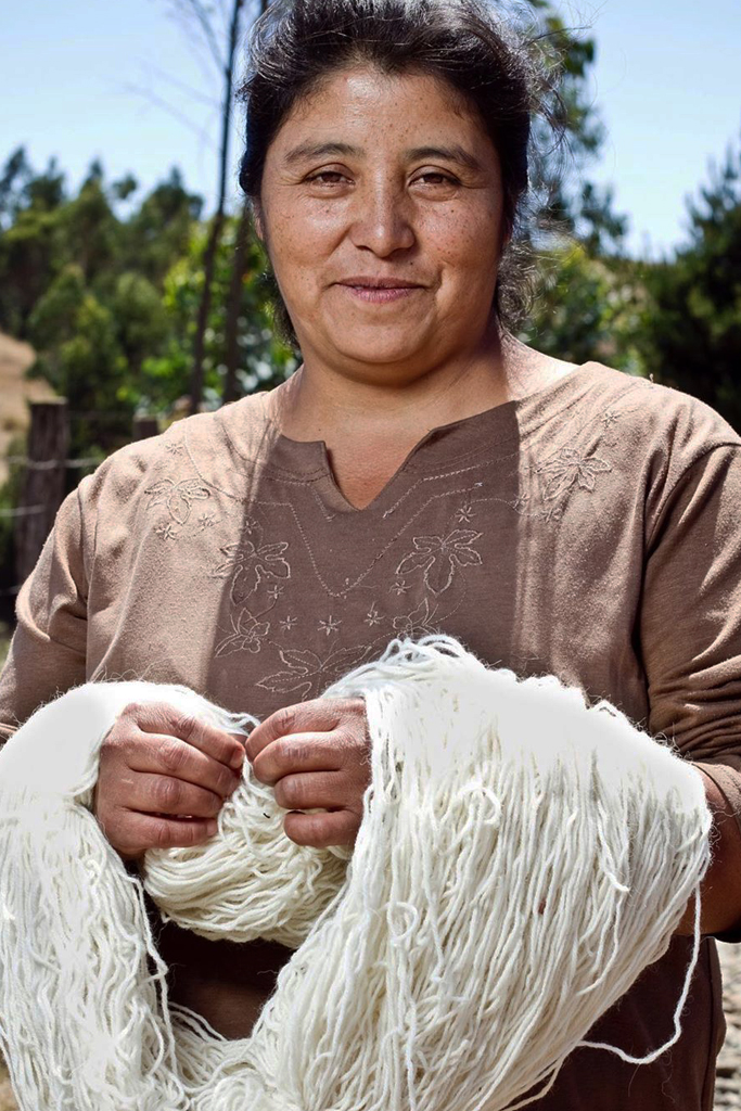 La comunidad Mapuche de Chile trabaja de la mano de Voz. Este es el único pueblo indígena en Sudamérica que no fue conquistado por los españoles. Con textiles característicos de sus tierras andinas como la lana, el algodón de Pima y la Baby Alpaca, las artesanas reviven técnicas antiguas de tejido que traen en la memoria de su ADN.